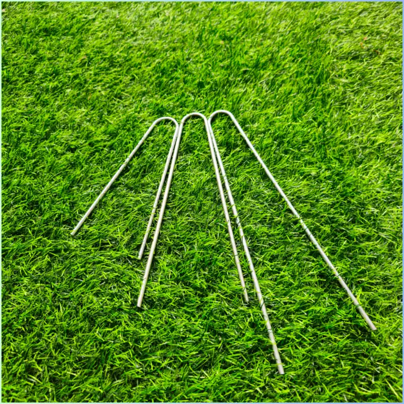 多尺寸V型鐵釘,用於任何需釘至土表的布製品,避免布製品被風吹走。 可配合本站販售的抑草蓆、銀黑布使用,達到抑制雜草的效果。